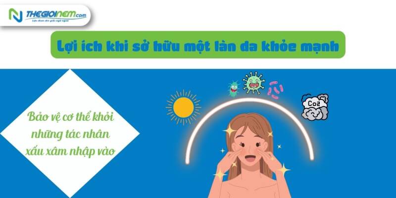 Bạn cũng đừng quên, chúng ta thường dành ⅓ quãng thời gian cuộc đời cho giấc ngủ, vì thế làn da chúng ta sẽ tiếp xúc rất nhiều với căn phòng ngủ của chúng ta. Việc có một chiếc nệm tốt sẽ giúp ích rất nhiều trong quá trình chăm sóc sức khỏe làn da và sở hữu một làn da khỏe mạnh. Thegioinem.com là địa chỉ uy tín chuyên cung cấp những sản phẩm nệm lò xo túi, nệm lò xo liên kết từ các thương hiệu lớn như Dunlopillo, Vạn Thành, Kim Cương,.... Chúng tôi cam kết các sản phẩm nệm được phân phối chính hãng với chất lượng và độ an toàn tuyệt đối nên bạn có thể hoàn toàn an tâm khi đến đây trải nghiệm.