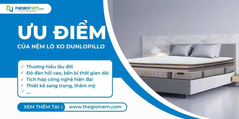Với gần 100 năm tồn tại, Dunlopillo là thương hiệu nệm có nguồn gốc từ Anh Quốc và được đánh giá là thương hiệu nệm toàn cầu. Dunlopillo cũng chính là thương hiệu bảo chứng cho chất lượng sản phẩm, bởi mỗi năm có đến hàng triệu người tiêu dùng trên khắp cả nước lựa chọn sử dụng sản phẩm nệm lò xo Dunlopillo cao cấp.