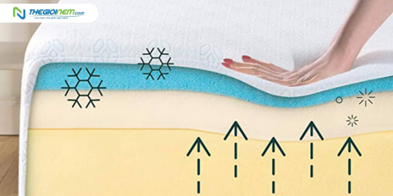 Để tránh cảm giác nóng bức khi nằm, bạn hãy tìm kiếm nệm có khả năng thoáng khí tốt. Nệm lò xo túi và nệm cao su thiên nhiên thường có khả năng thoáng khí tốt hơn, giúp duy trì nhiệt độ thích hợp khi bạn nằm, đảm bảo mang lại cho bạn giấc ngủ trọn vẹn.