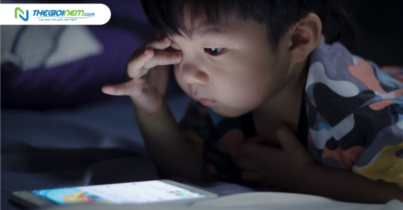 Sử dụng điện thoại: Chúng ta dễ dàng bắt gặp trẻ em dành rất nhiều thời gian cho mạng xã hội, game, các trò chơi điện tử,...Khi không được kiểm soát chặt chẽ từ gia đình, điều này làm cho trẻ thức khuya vào ban đêm và dậy rất sớm vào buổi sáng.