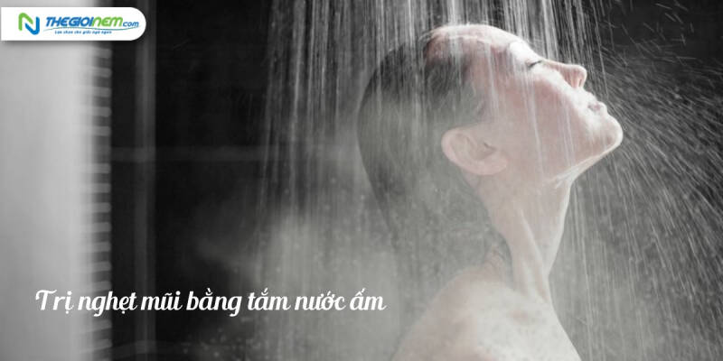 Cách trị nghẹt mũi bằng tắm nước ấm: Một cách trị nghẹt mũi cấp tốc tại nhà rất đơn giản mà có thể thực hiện hàng ngày là tắm nước ấm. Việc hít thở hơi nước ấm trong khi tắm giúp lượng dịch nhầy trong xoang mũi lỏng ra và giảm tình trạng viêm, do đó nếu đang bị nghẹt mũi khó thở khi ngủ hoặc nghẹt mũi chảy nước mũi nên tắm nước ấm dưới vòi sen hoặc ngâm mình trong bồn tắm với nước ấm.