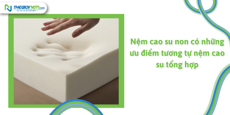 Do được pha trộn từ nhiều nguồn nguyên liệu khác nhau nên nệm cao su non đem lại cảm giác như nệm cao su tổng hợp. Nệm có một mức giá hấp dẫn, rẻ hơn rất nhiều so với cao su thiên nhiên nhưng vẫn giữ được độ đàn hồi và khả năng chăm sóc sức khỏe tối ưu, do đó được rất nhiều khách hàng thị trường Việt Nam tin dùng.
