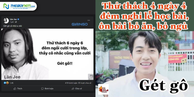 Ngoài trở thành khẩu hiệu, “thử thách 6 ngày 6 đêm” và "gét gô" cũng trở thành câu cửa miệng của rất nhiều cư dân mạng. Bạn sẽ dễ dàng tìm được những bài đăng, những chia sẻ, những câu chuyện sử dụng cụm từ này trên mạng xã hội chỉ với hashtag #getgo.